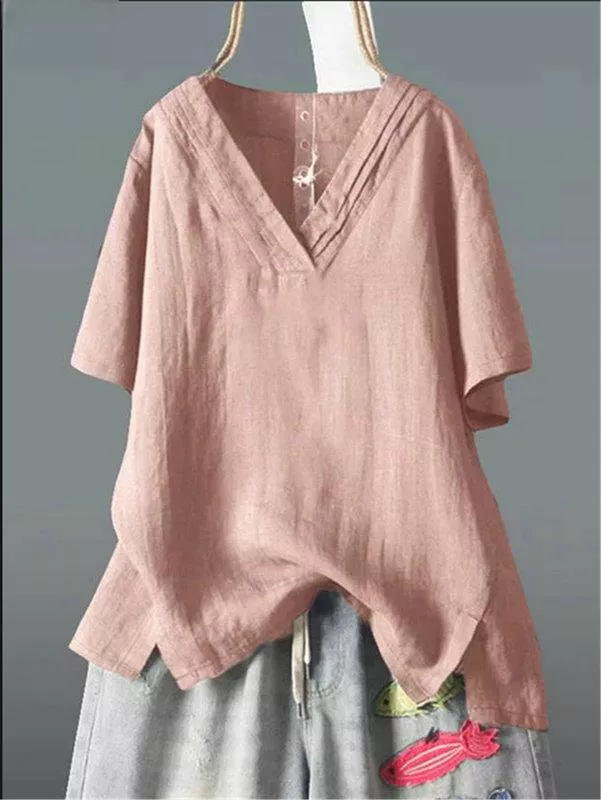 Womens Short Sleeve Casual Loose cotton linen cloth Top Thin Section Blouse Shirt Plus Size