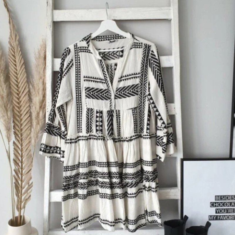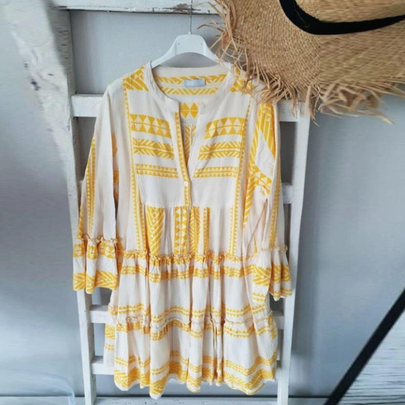 2021Printed Dress Women Summer Nine Quarter Sleeve Loose V Neck