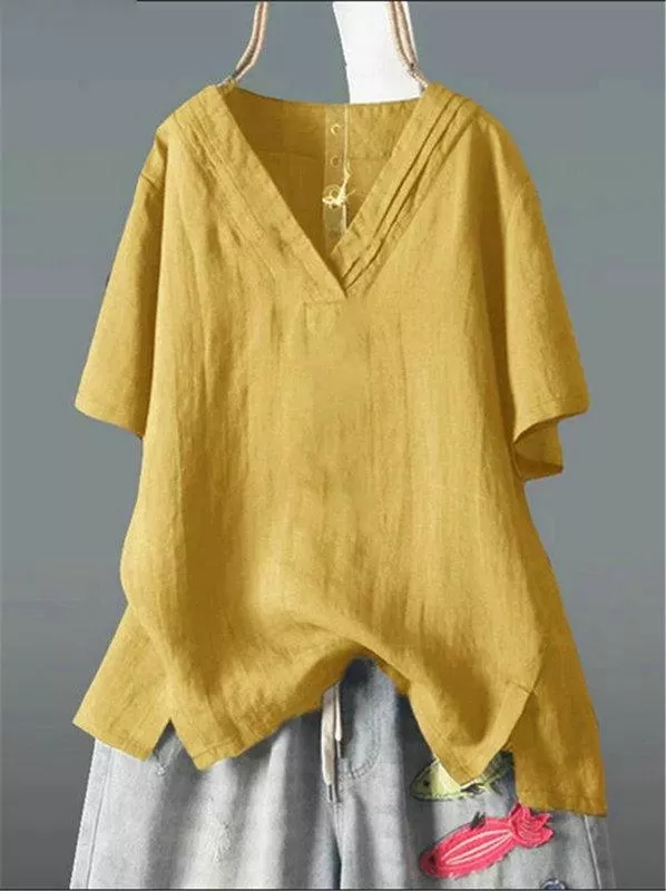 Womens Short Sleeve Casual Loose cotton linen cloth Top Thin Section Blouse Shirt Plus Size