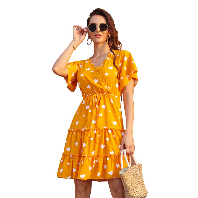 Chiffon Daisy French Floral Waist Dress Summer Wave Dot Print Sundress Women's Party Club