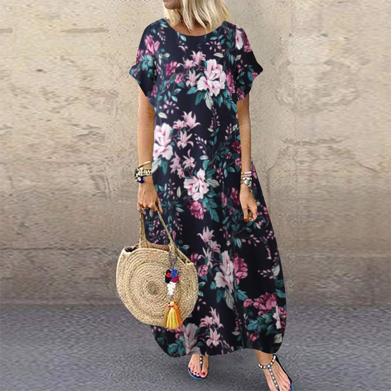 Summer Beach Dress Women's Printed Sundress Casual Short Sleeve Maxi Female Floral Robe Oversized