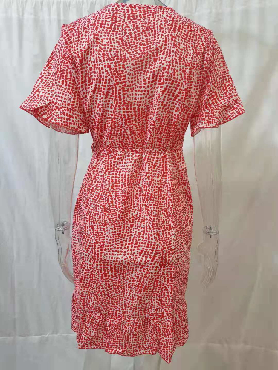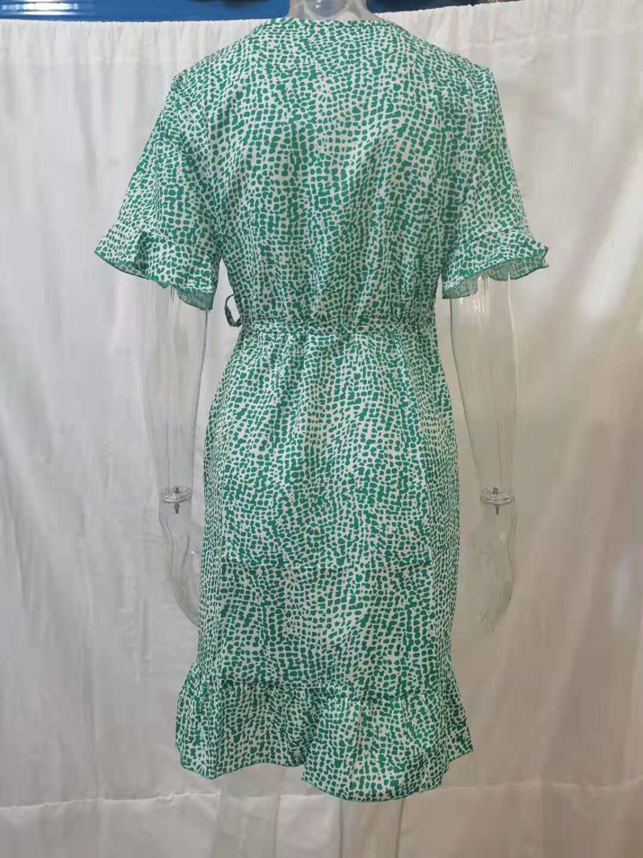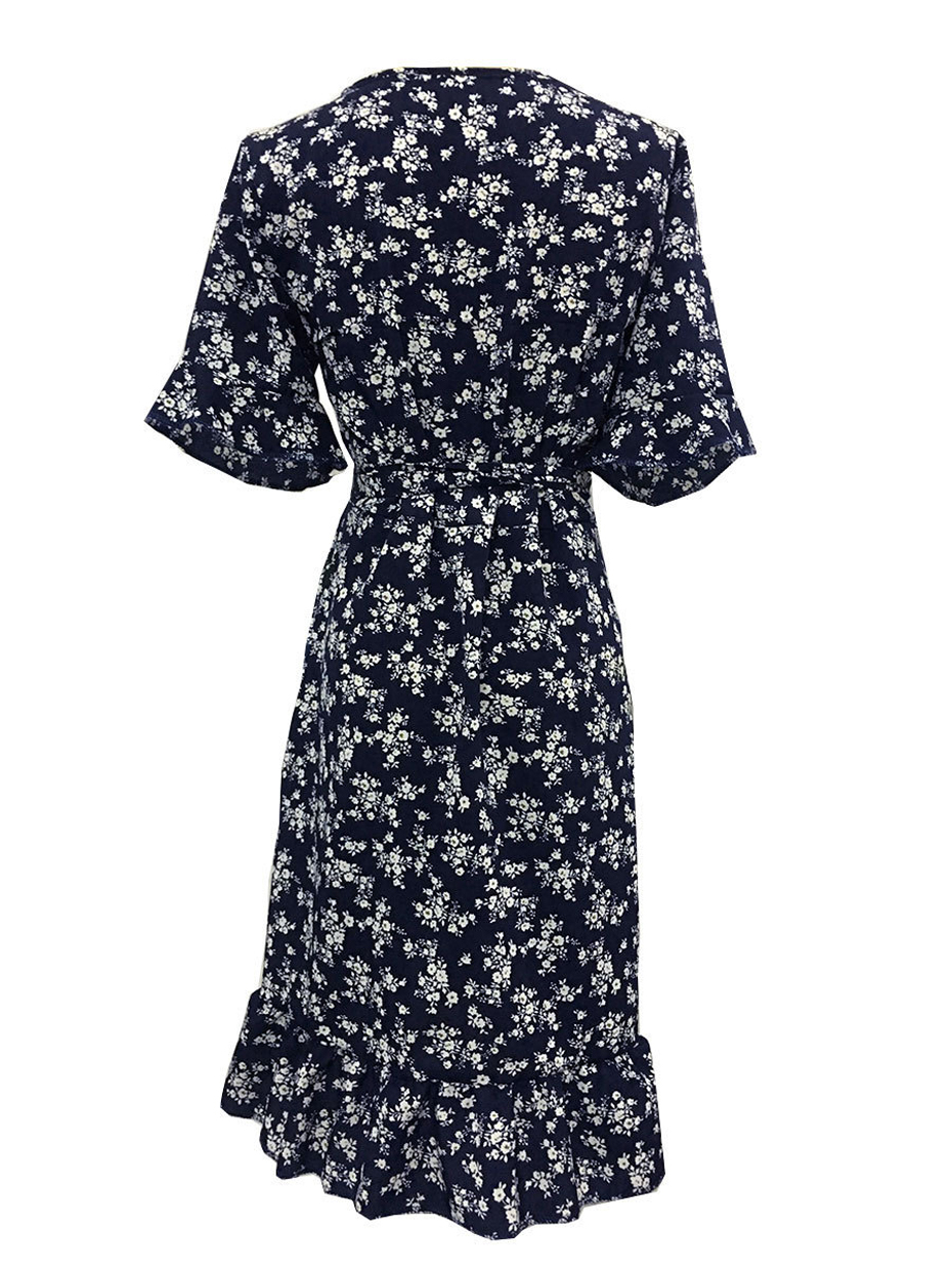Sexy V Neck Floral Print Women Dresses Summer Ruffle Short Sleeve