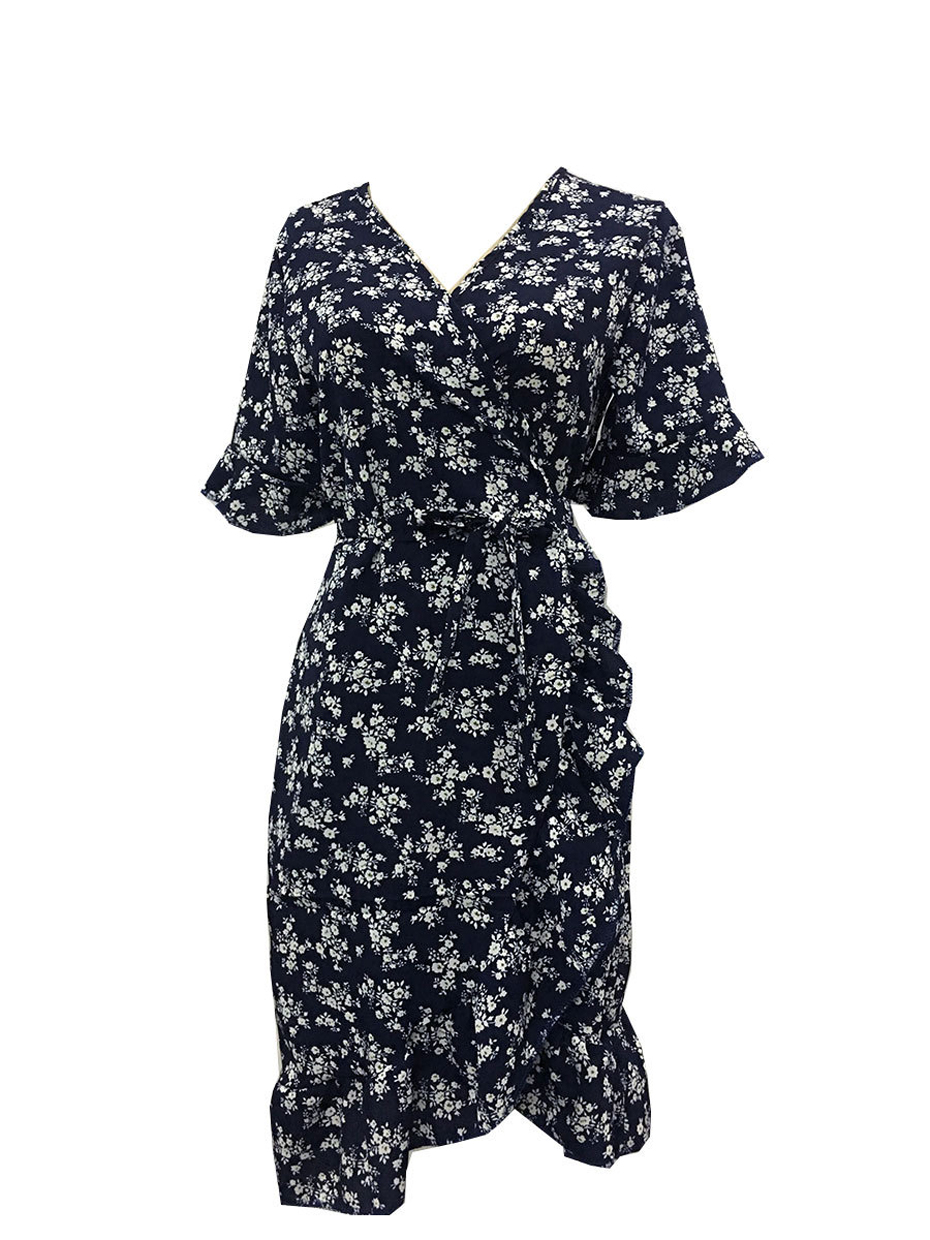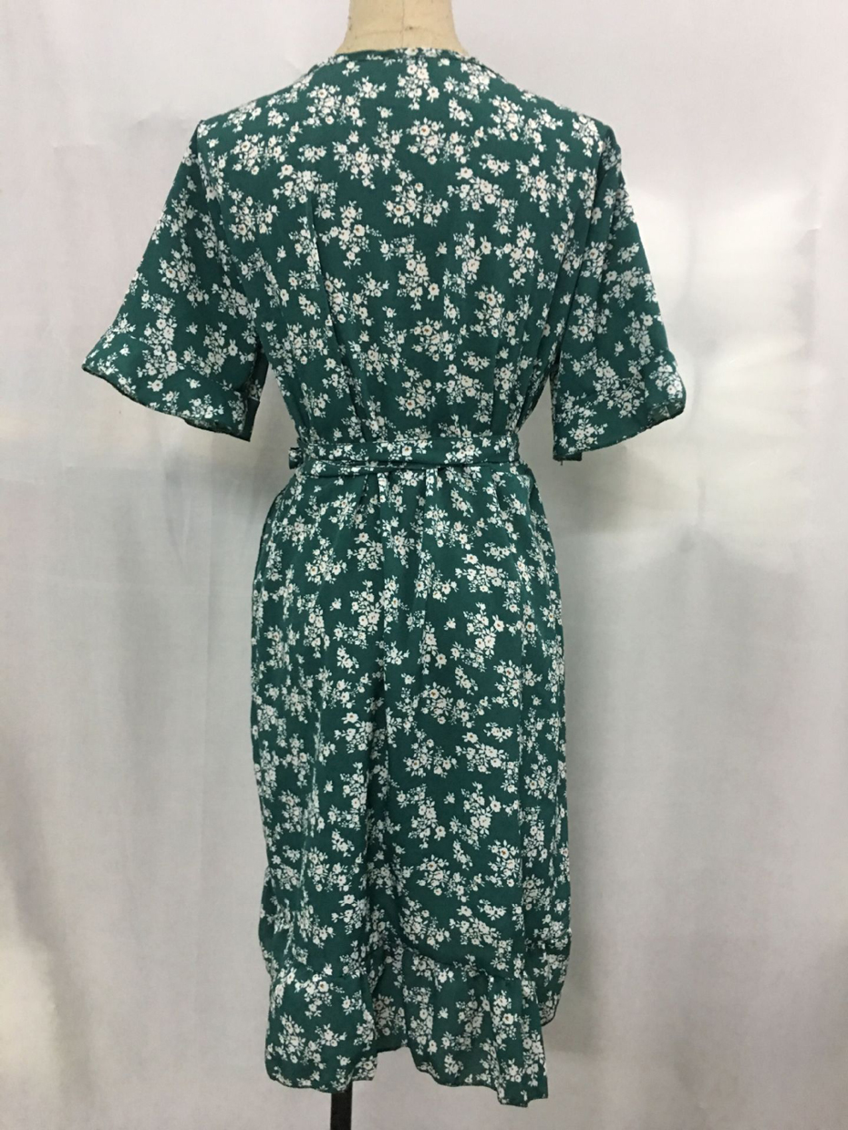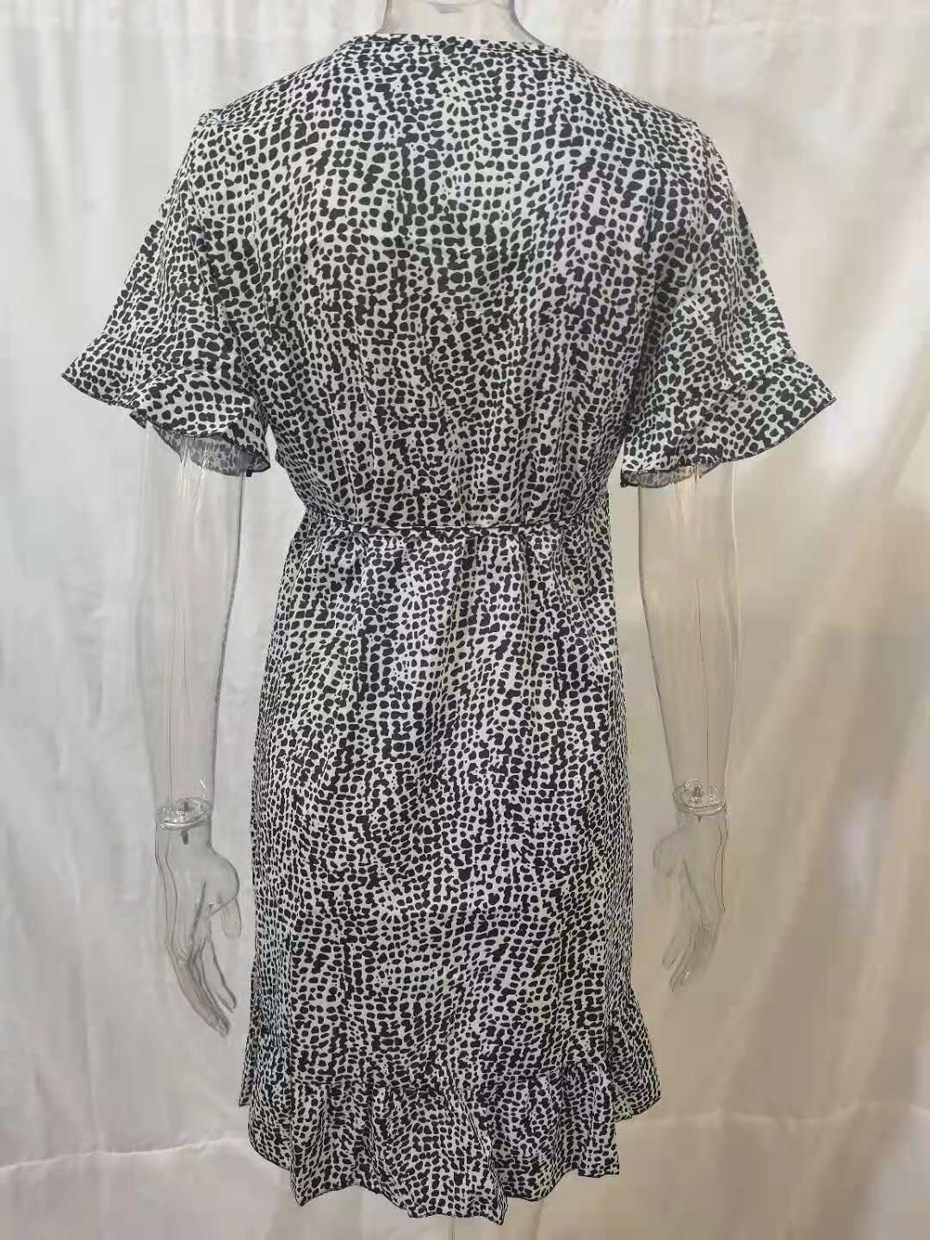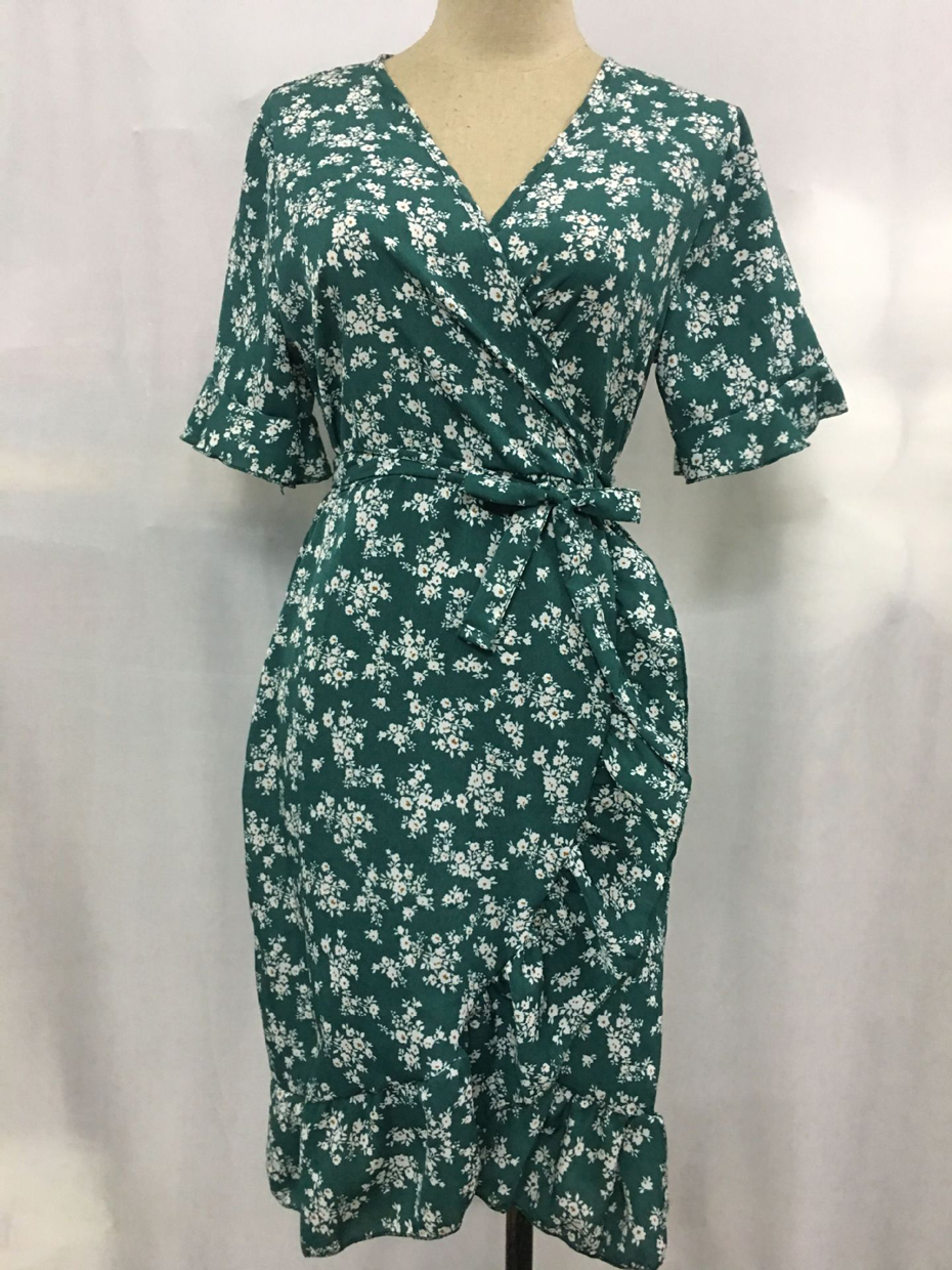 Sexy V Neck Floral Print Women Dresses Summer Ruffle Short Sleeve