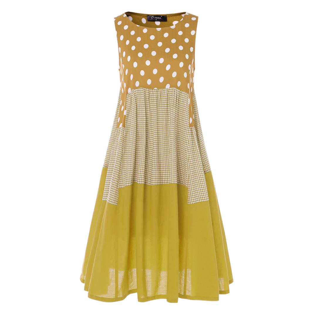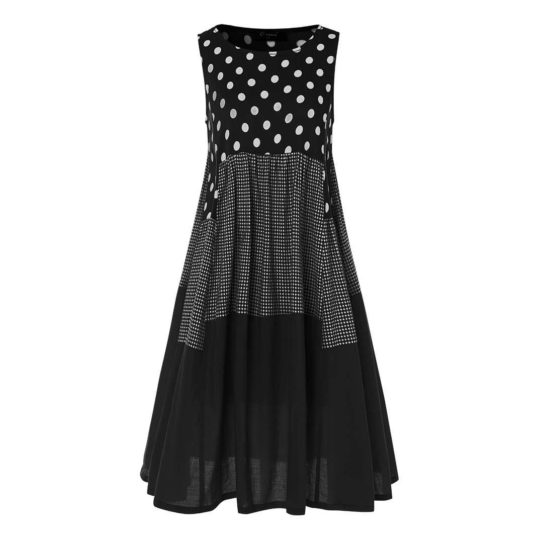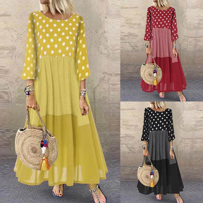 Women Polka Dot Long Sundress Autumn Vintage Pacthwork Dress Casual Cotton Shirt