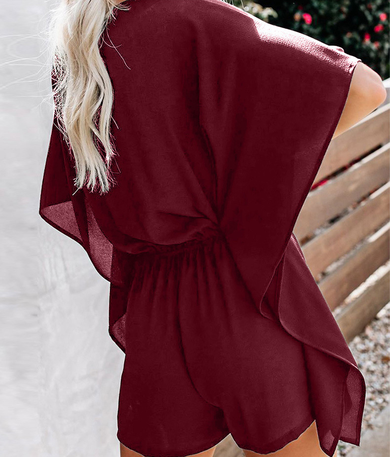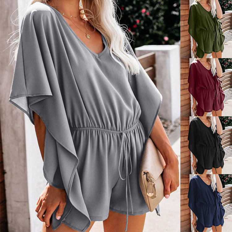 Summer fashion solid color jumpsuit for women V-neck high-waisted wide loose casual pants