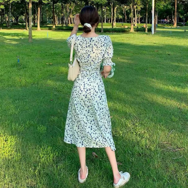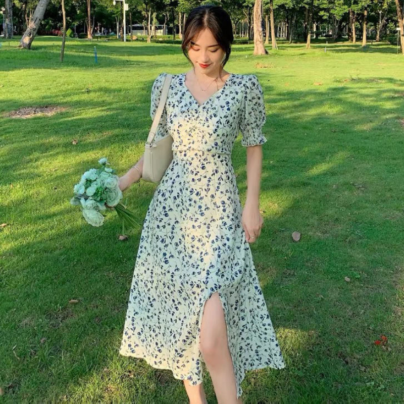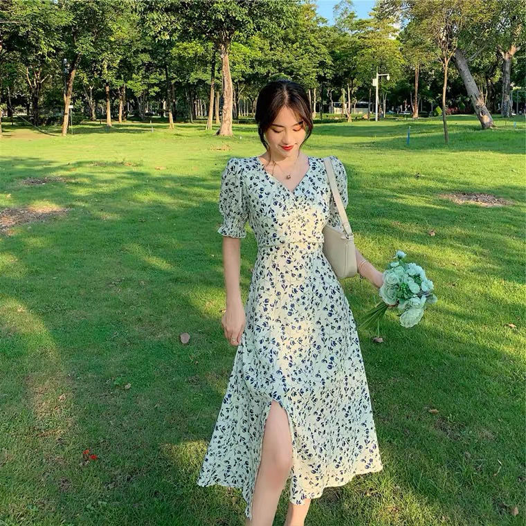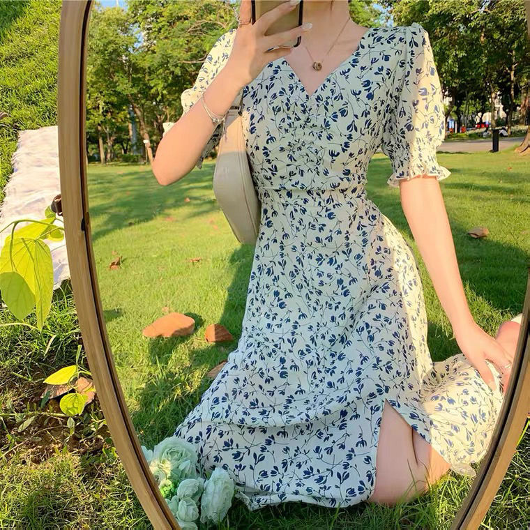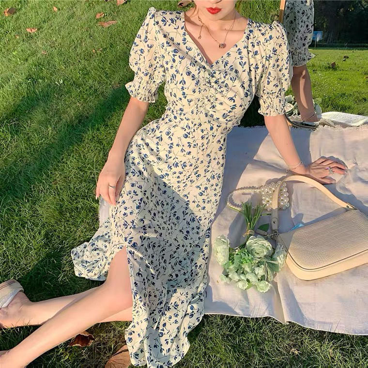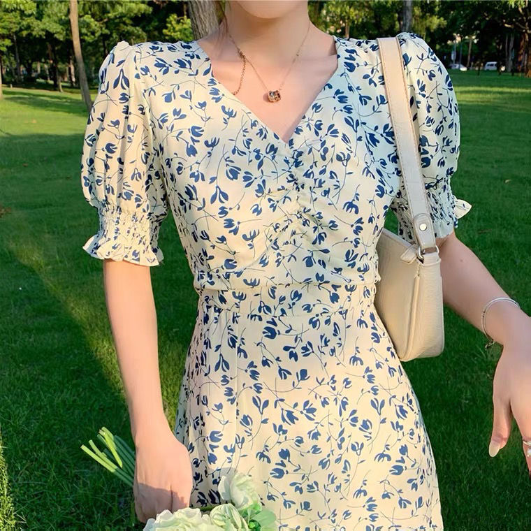 Short-sleeve Dress Women Printing V-neck