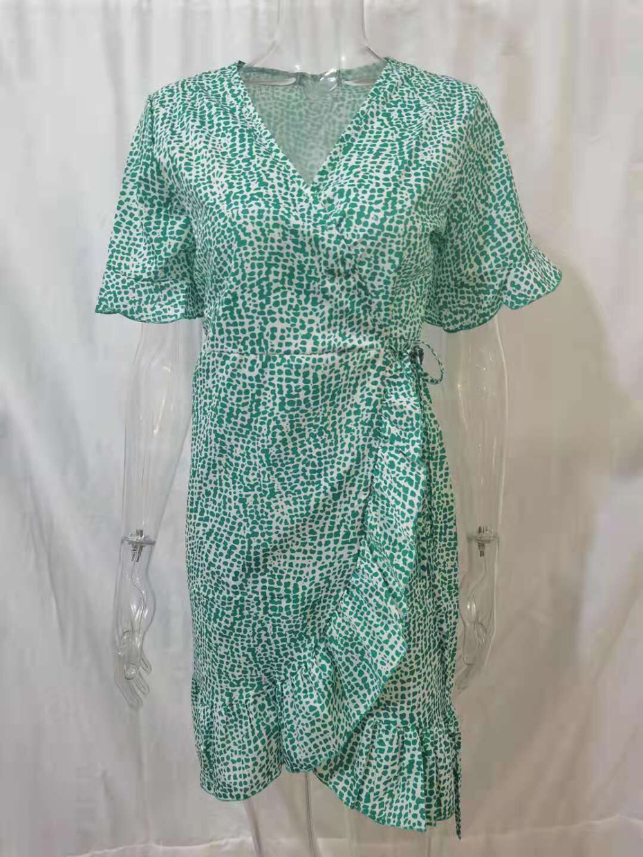 Sexy V Neck Floral Print Women Dresses Summer Ruffle Short Sleeve