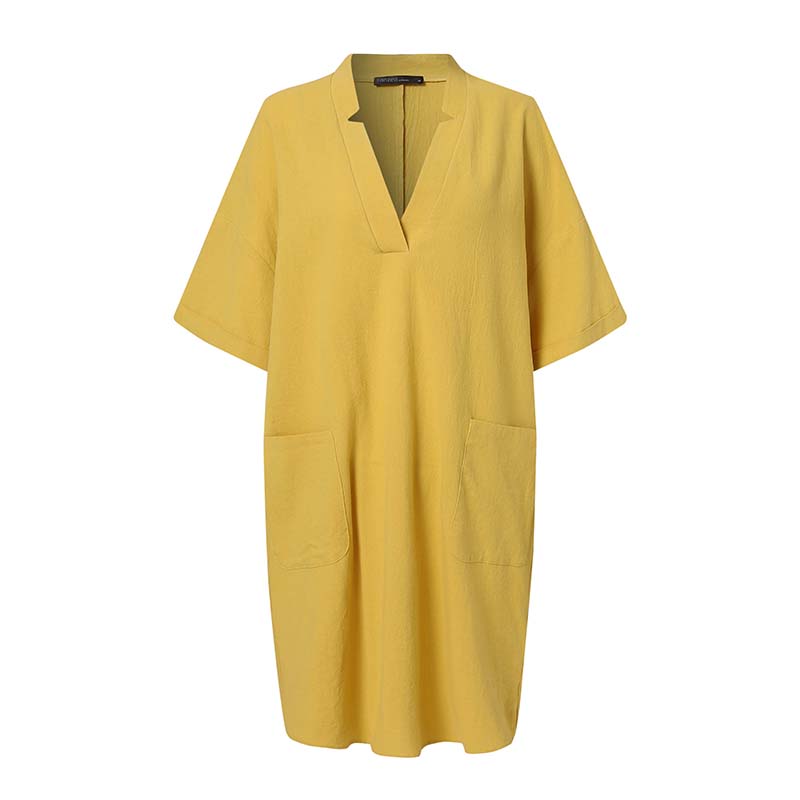 Elegant Soild Shirt Dress Women's Summmer Half Sleeve Mini Vestidos Female Pockets