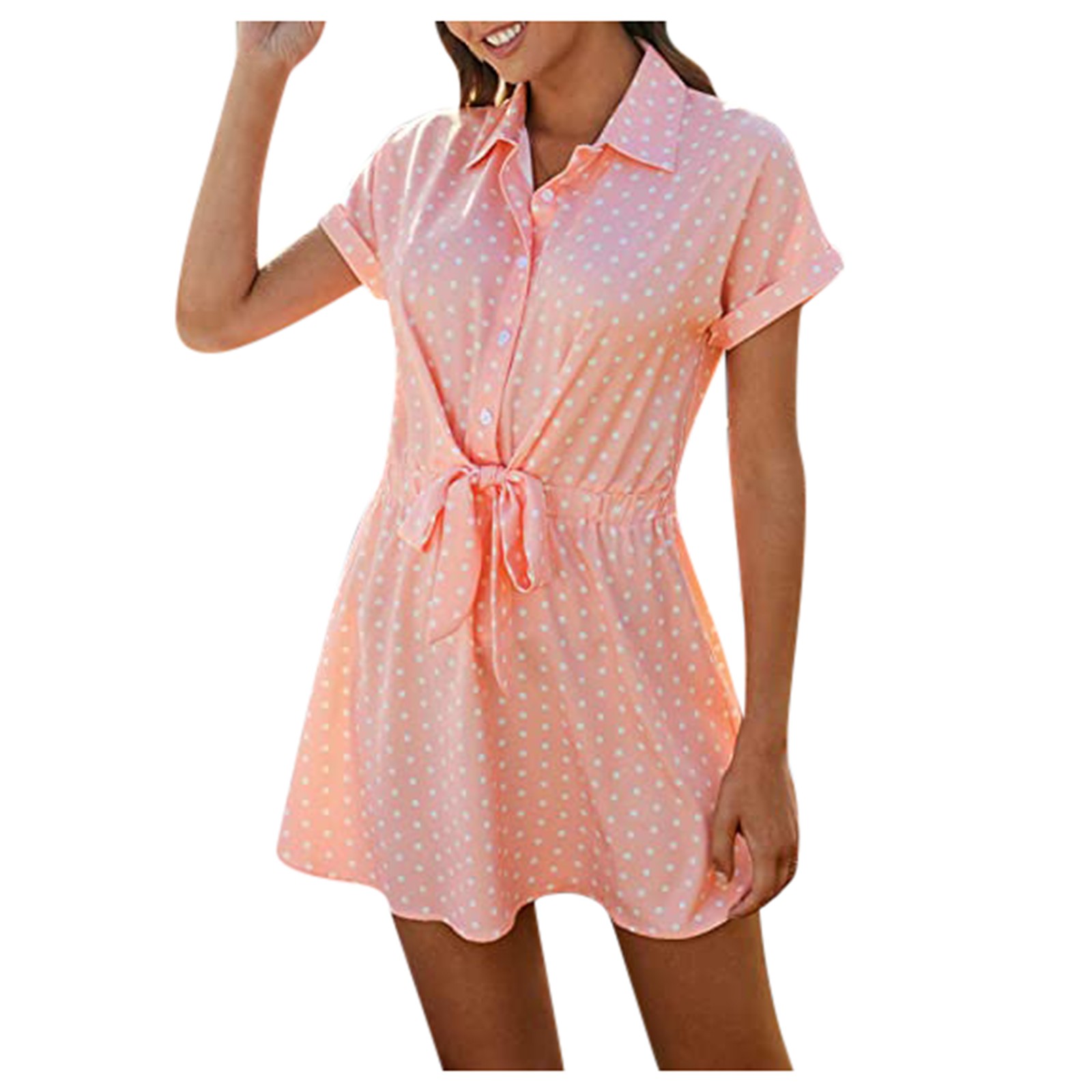 Fashion Women Dresses Summer Boho Dot Print High Waist Shirt Dress