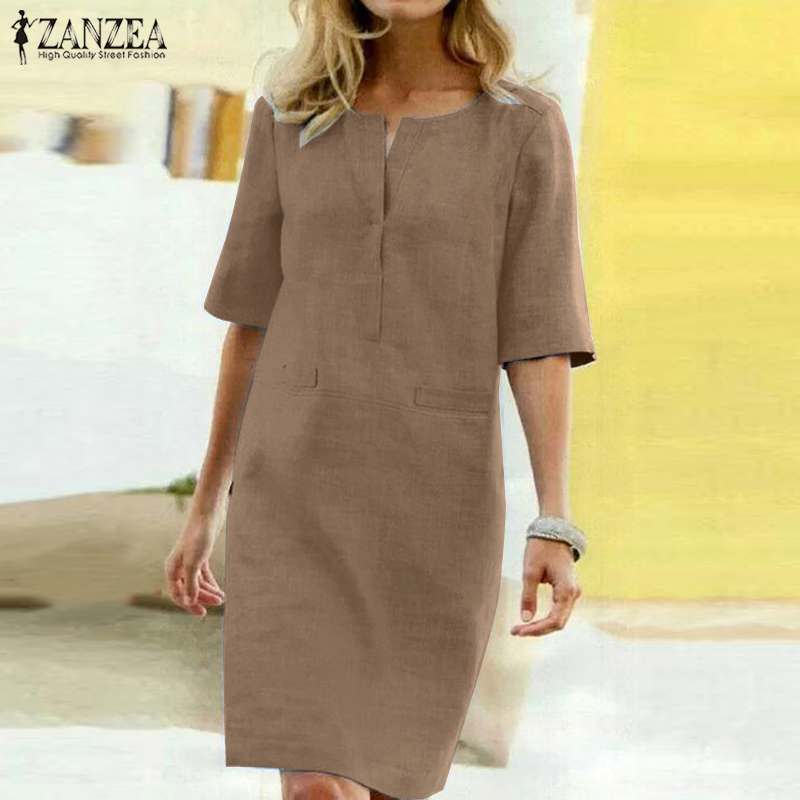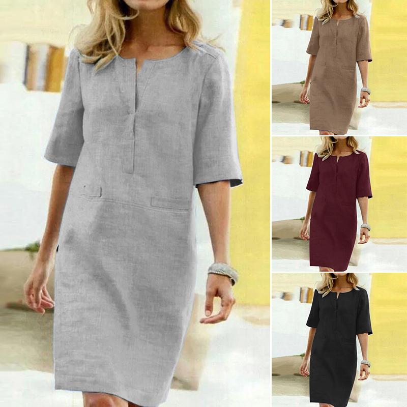 Women's Summer Sundress Vintage Casual Tunic Half Sleeve Shirt Party Robe Plus Size