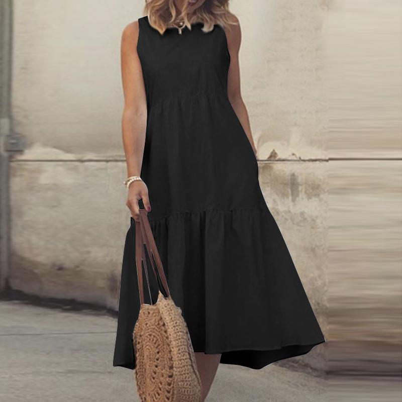 Summer Sundress Fashion Ruffle Dress Casual Sleeveless Tank Solid Midi Robe