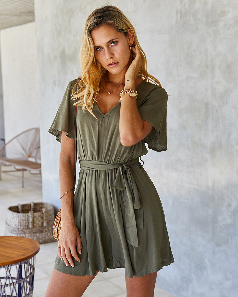 Fashion Yellow Dress for Women Vintage Solid Sexy Soft
