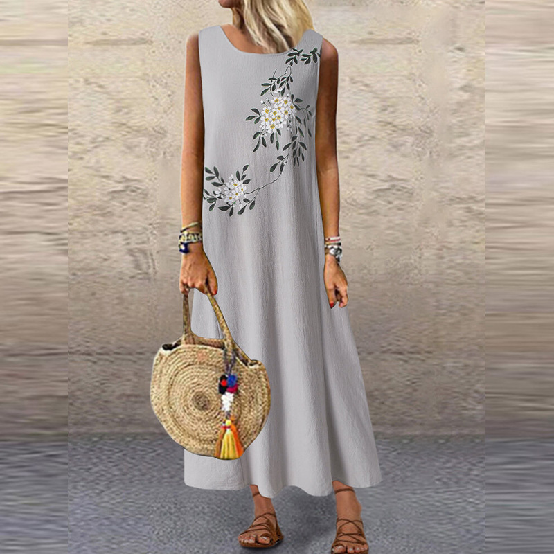 Women's Floral Printed Loose Dress Casual O-Neck Sleeveless